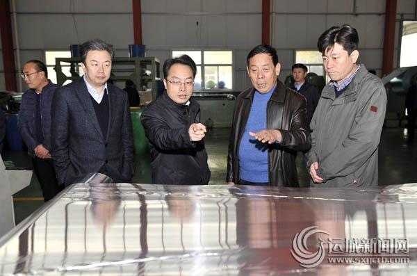 市委副书记、代市长朱鹏在同天翔有色金属公司调研。 记者 闫鑫 摄