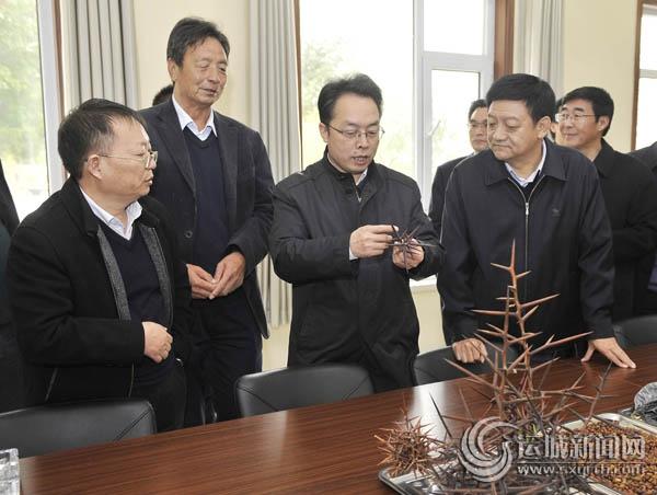 市委副书记、代市长朱鹏在皂荚创新科技示范园区调研。 记者 闫鑫 摄