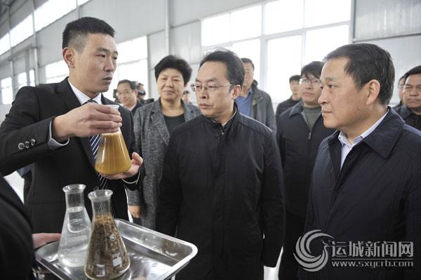 市委副书记、代市长朱鹏在中车永济电机有限公司调研。 记者 闫鑫 摄