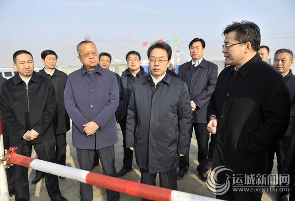 市委副书记、代市长朱鹏在临猗县督导第二污水处理厂改造工程建设情况。记者 闫鑫 摄