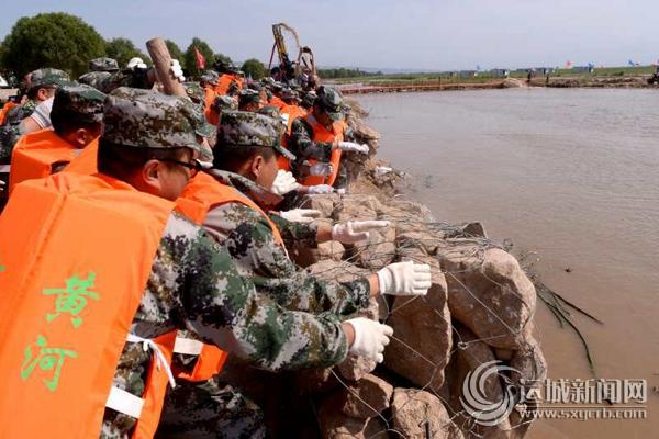 省防汛应急抢险总队、运城市防汛抢险队、武警运城支队和永济、河津、芮城、临猗、万荣黄河防汛骨干抢险队等8支抢险队500名队员参加防汛演练。全省11个市水利局局长、防办主任;沿黄19个县(市)的防汛总指挥、水利局局长、防办主任在现场观摩演练。