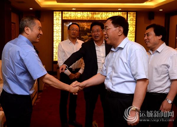 市委书记刘志宏与黄一新一行人员亲切握手 记者 雷哲侠 摄