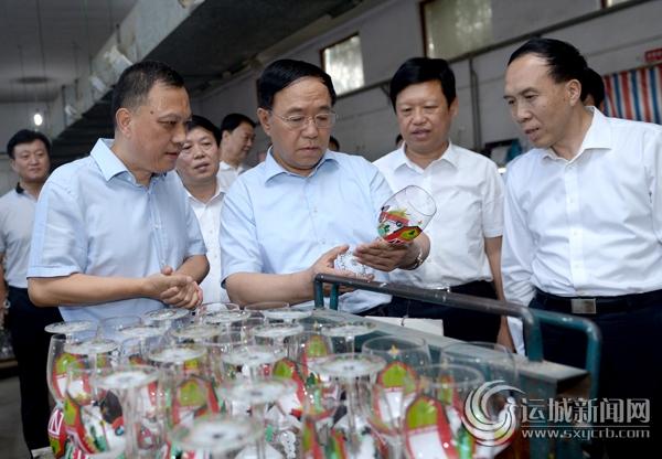 昨日,市委书记刘志宏在闻喜县宏伟玻璃器皿有限公司调研传统产业升级情况。 记者 雷哲侠 摄