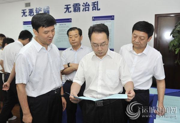 市长朱鹏在盐湖区公安局调研扫黑除恶专项斗争活动。 记者 闫鑫 摄