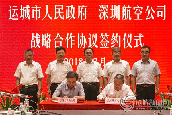 签约仪式上,刘志宏、深圳航空有限责任公司总裁陈志勇分别讲话。市委常委、市委秘书长乔登州出席签约仪式。深航副总裁王杰主持签约仪式。深航总裁助理王爱武介绍深航发展情况、在运城机场的经营情况和未来规划。副市长卫再学介绍我市经济社会发展情况。卫再学、王爱武分别代表我市和深航签署战略合作协议。