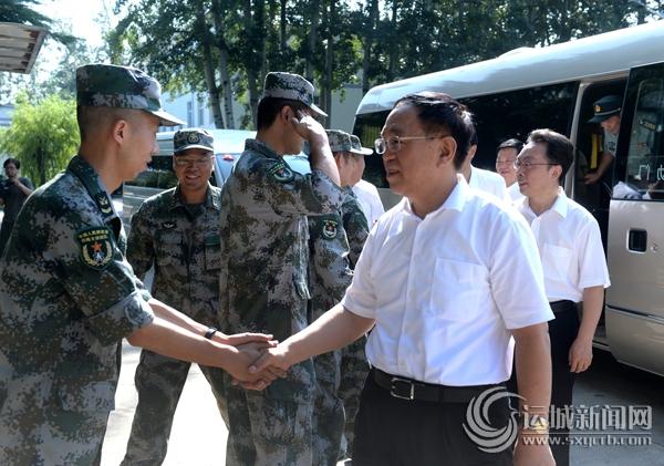 市委书记 刘志宏一行来到市公安消防支队,与官兵们亲切握手。记者 雷哲侠 摄