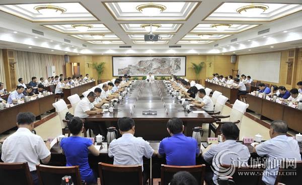 本网讯(记者 张 越)7月26日,市委副书记、市长朱鹏主持召开市政府第三次全体(扩大)会议,深入学习贯彻习近平新时代中国特色社会主义思想和党的十九大精神,落实省委“一个指引、两手硬”工作思路和要求,对照年初市委经济工作会议部署要求和《政府工作报告》确定的目标任务,回顾总结上半年经济社会发展情况,分析存在问题和差距,安排部署下半年工作,进一步统一思想,凝心聚力,扎实工作,全面推进“大讨论大实践大学习”活动走向深入,确保全年各项目标任务圆满完成,加速全市转型发展、高质量发展步伐。市委常委、常务副市长陈杰,副市长陈竹琴、卫再学、崔元斌,市政府秘书长张保安出席会议。