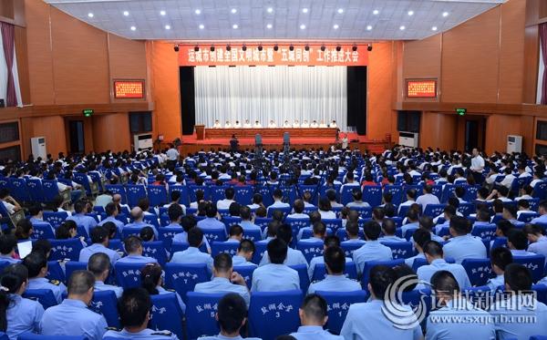 本网讯(记者 王文军)8月8日,全市创建全国文明城市暨“五城同创”工作推进大会召开,深入学习贯彻习近平新时代中国特色社会主义思想和党的十九大精神,认真贯彻落实省委书记骆惠宁在运调研检查重要指示精神,组织动员全市广大干部群众以创建全国文明城市为总牵引,协同推进国家卫生城市、园林城市、食品安全城市和全国“双拥”模范城市创建,全面提升城市文明水平,为“走进新时代,建设大运城”创造良好环境。
