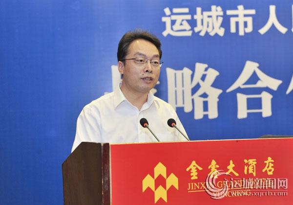 朱鹏在致辞时代表市委、市政府对张喜胜一行来运表示欢迎,对中铁十五局集团重视与运城合作,共建战略合作关系表示感谢,并介绍运城经济社会发展情况。朱鹏说,运城是历史悠久的文化之城、区位优越的开放之城,地处新亚欧大陆桥和丝绸之路经济带上的重要节点,承东启西,贯通南北,辐射中原,当前,城市的公路、高铁、航空等立体化交通网络已经形成。党的十九大以来,运城市以“走进新时代,建设大运城”为总抓手,举全市之力,组织实施“3515重大工程项目”,加快推进大运城“城建111工程”,全力打造山西对外开放新高地和黄河金三角地区具有较强引领带动作用的区域性中心城市。中铁十五局集团隶属于世界500强的中国铁建股份有限公司,是集设计、施工、科研于一体的国有建筑工程总承包企业,先后承建、参与了多项重点铁路、高等级公路、高速铁路等工程,在行业内口碑良好,业绩一流。双方将充分发挥各自优势,精诚合作,并以此次签约为契机,全面深化合作,实现互惠互利、共赢发展。