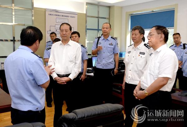 在市公安局“扫黑办”调研。 记者 雷哲侠 摄