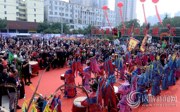 大会前,与会嘉宾兴致勃勃地观看了高台花鼓、高跷走兽、永济花伞、万荣抬阁等非物质文化展演,以及智利、贝宁等国家的40余名外国友人表演的异域风情舞蹈。