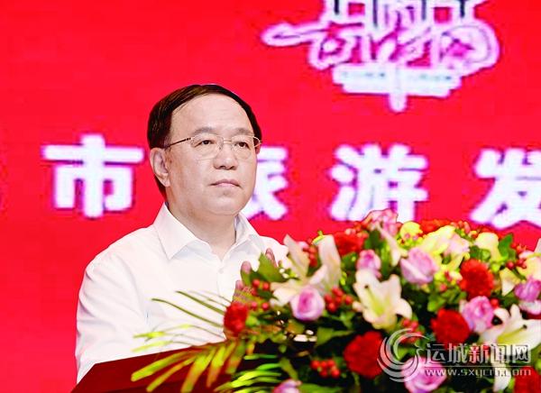 同志们、朋友们!文化是旅游的灵魂,旅游是文化的载体。在历史与现实、文化与旅游的交融中,运城文化旅游迎来了新一轮大发展、大提升、大跨越的重要战略机遇期。同时,辐射半径不大,在国际国内具有影响力的龙头景区少,景点分散、各自为政,宣传力度不大,文物保护和利用率不协调等问题和不足,也是运城文化旅游亟待破解的重大课题。我们将紧跟时代潮流,在“走进新时代,建设大运城”的总体布局中,进一步加强顶层设计,以全域旅游理念,统筹谋划“黄河板块、中条山板块、历史遗存板块、农业农村板块”四大旅游板块,特别是在黄河板块上,要为全省黄河板块旅游作出贡献;着力打造20个品牌景点,精心推出6条精品线路,全面开启、加快建设面向广阔国际国内文化旅游市场的历史文化体验区、休闲康养度假区、农耕文明传承区。