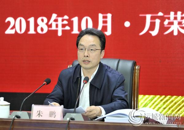 朱鹏在致辞中简要介绍我市市情和经济社会发展情况。他指出,运城是农业大市、人口大市,也是用水大市,水利工程是运城经济社会发展的生命线。2018年,运城市制定了农村饮水安全巩固提升工作计划,严格对照指标,综合采取新建、扩建、改造、配套、联网等方式,全面解决贫困县的饮水安全问题。下一步,运城将以此次现场推进会为契机,学习借鉴兄弟市县的先进经验,加大投资力度,综合采取优质水源工程建设、集中供水管网延伸、入户工程巩固提升等措施,确保按期完成全市农村饮水安全巩固提升和脱贫攻坚建设任务;坚持问题导向,针对部分平原县水质不达标和原有饮水工程老化失修等问题,开展提质增效工程,进一步提升饮水安全工作标准,加快推进全面小康进程。