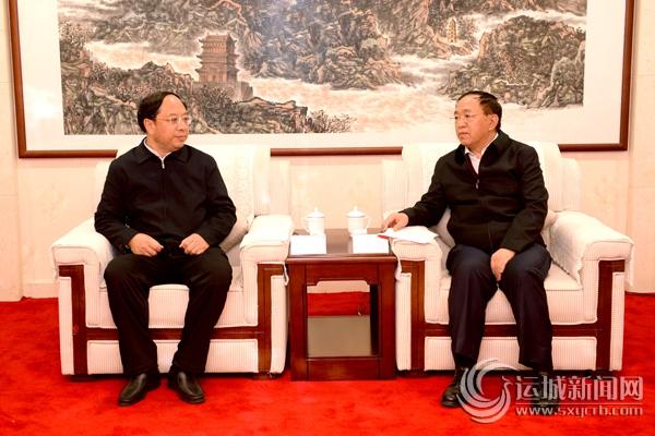 刘志宏会见山西日报社社长郭玉福。 记者 雷哲侠 摄