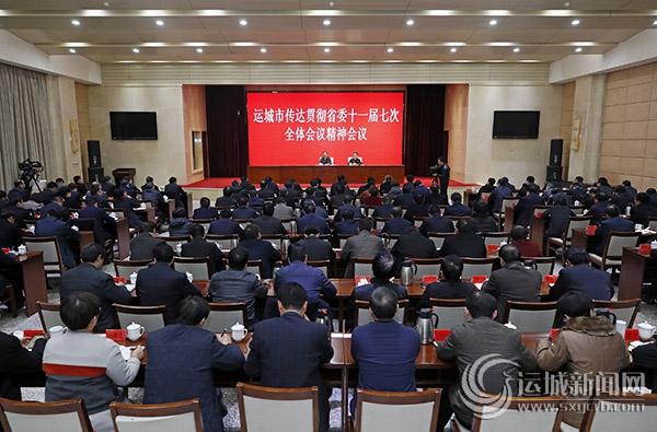 会议要求,深入学习领会省委十一届七次全会精神,推动省委重大决策部署在运城落地生根。一要深刻领会一年来全省深入学习贯彻党的十九大精神和习近平总书记视察山西重要讲话精神取得的显著成效,更加自觉地用习近平新时代中国特色社会主义思想统揽大局、推动发展。二要深刻领会一年来山西党的建设和党的事业发生的一系列重大而深刻的变化,进一步坚定做好2019年工作的信心和决心,更加自觉地按照省委决策部署,把运城党的建设和党的事业不断推向前进。三要深刻领会省委对全省改革发展面临困难和问题的分析研判,自觉查找问题,弥补差距短板,采取得力措施加以解决。四要深刻领会省委对推进山西新时代改革开放的总体部署,系统谋划和推进运城的改革开放工作,倾力再造运城改革开放新优势。五要深刻领会省委对当前重点工作的系统安排部署,重点抓好深入推进党政机构改革、谋划安排明年经济工作、开好市县两会、抓好“改革创新、奋发有为”大讨论准备、重要工作和事项的整改落实等五方面工作。六要深刻领会省委对激励干部担当作为作出的新部署新要求,在导向上发力,进一步把敢不敢扛事、愿不愿做事、能不能成事作为识别干部的重要标准;在监督上强化,既要管住乱用滥用权力的渎职行为,又要管住不用弃用权力的失职行为,整治不担当、不作为、慢作为、假作为;在作风上引导,树立以解决问题为目的抓落实的导向。