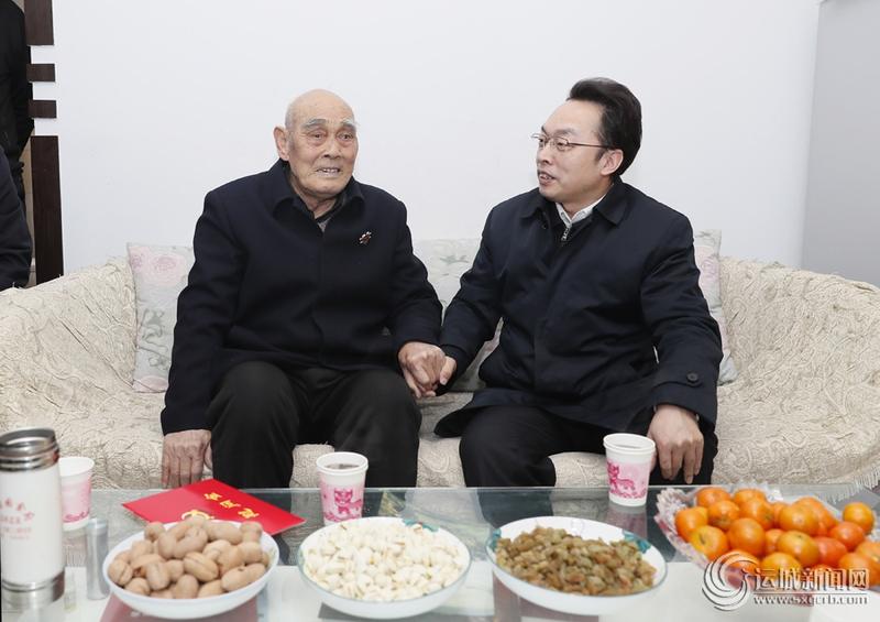 本网讯(记者 张 越)在新春佳节即将来临之际,1月19日,市委副书记、市长朱鹏到闻喜县走访慰问新中国成立前入党的老党员和困难职工、群众、劳模及科技带头人,给他们送去党和政府的温暖,向他们致以节日祝福和亲切问候。市人大常委会副主任、市总工会主席杜自立,副市长陈竹琴、市政府秘书长张保安一同慰问。