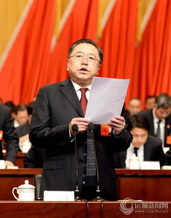 张守相作运城市人大常委会关于提请审议《运城市“一区五带”产业发展规划》的议案及说明 记者 雷哲侠 摄