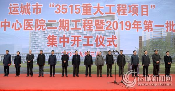 本网讯(记者 王文军)人勤春来早,奋进正当时。3月2日,运城市“3515重大工程项目”运城市中心医院二期工程暨2019年第一批项目集中开工仪式举行,吹响新一年全市狠抓项目、大上项目的冲锋号。市领导刘志宏、安雅文、张润喜等出席开工仪式。市委常委、常务副市长陈杰宣布开工并讲话。副市长陈竹琴主持开工仪式。