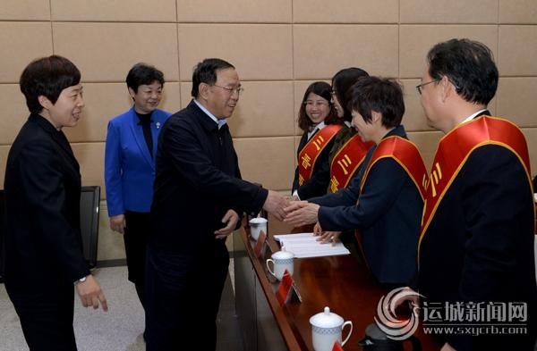 刘志宏与我市入选的三晋英才亲切握手 记者 雷哲侠 摄