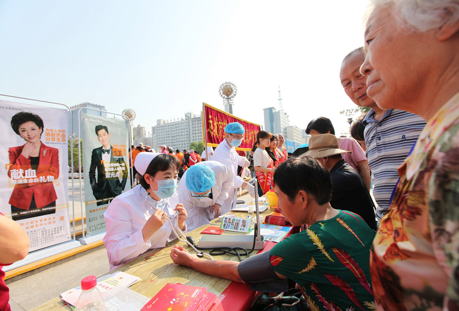 活动现场,我市部分“全国无偿献血金奖者”荣誉获得者受到表彰,获奖者还上台分享了自己的献血经历和感触。活动还通过有奖知识竞答、文艺节目表演等形式,让更多的市民了解无偿献血的基础知识,呼吁更多的市民参与到无偿献血的队伍中来。同时,志愿者和血站的工作人员摆出宣传台,为过往的市民量血压、测血型,向市民发放宣传单,讲解急救知识,吸引和帮助市民了解无偿献血、参与无偿献血。