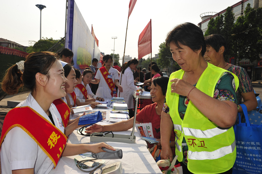 6月14日,稷山县开展第16个“世界献血者日”宣传活动,动员和鼓励更多的适龄健康公民积极参与无偿献血活动。图为稷山县爱心天使志愿者协会会员在开展宣传活动。 薛建磴 摄