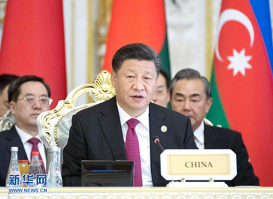 6月15日,亚洲相互协作与信任措施会议第五次峰会在塔吉克斯坦首都杜尚别举行。国家主席习近平出席峰会并发表题为《携手开创亚洲安全和发展新局面》的重要讲话。 新华社记者 谢环驰 摄