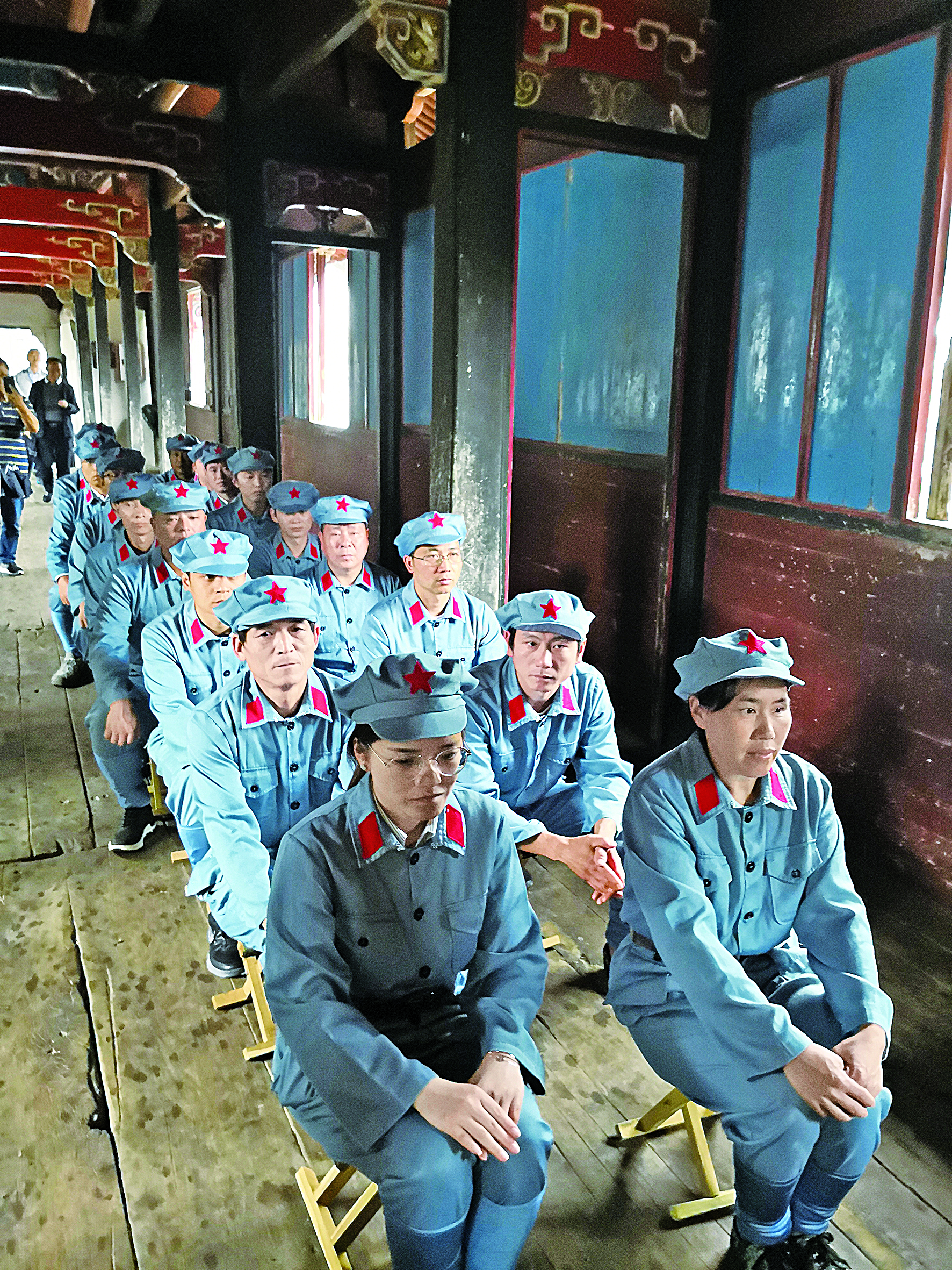 ▲“红军干部”在工农红军挺进师旧址接受革命教育