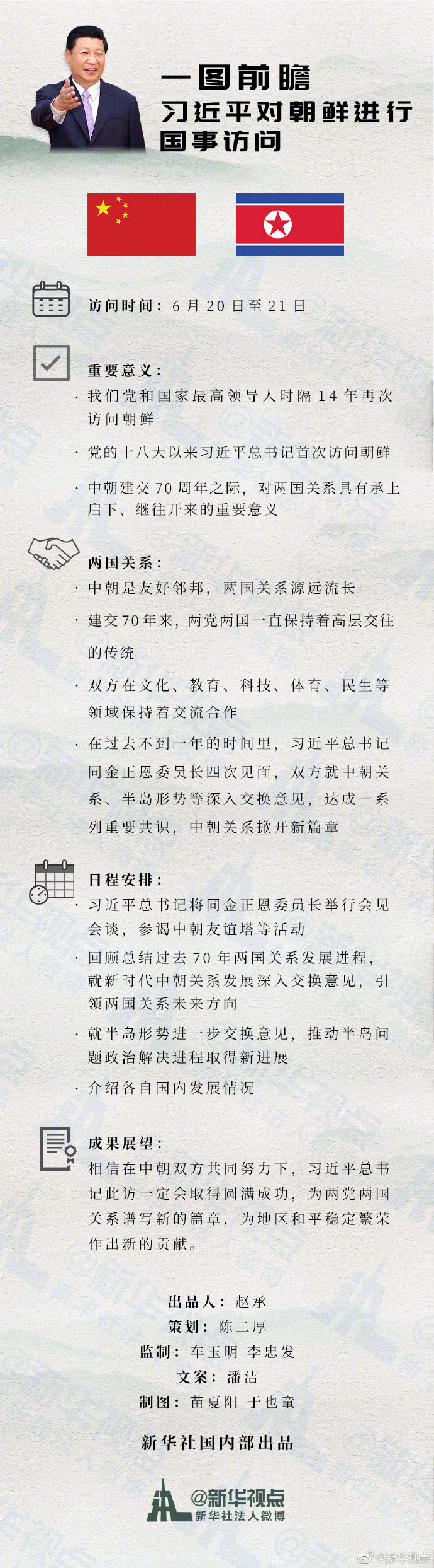 新华社北京6月17日电 中共中央对外联络部发言人胡兆明17日在北京宣布:应朝鲜劳动党委员长、朝鲜民主主义人民共和国国务委员会委员长金正恩邀请,中共中央总书记、中华人民共和国主席习近平将于6月20日至21日对朝鲜民主主义人民共和国进行国事访问。