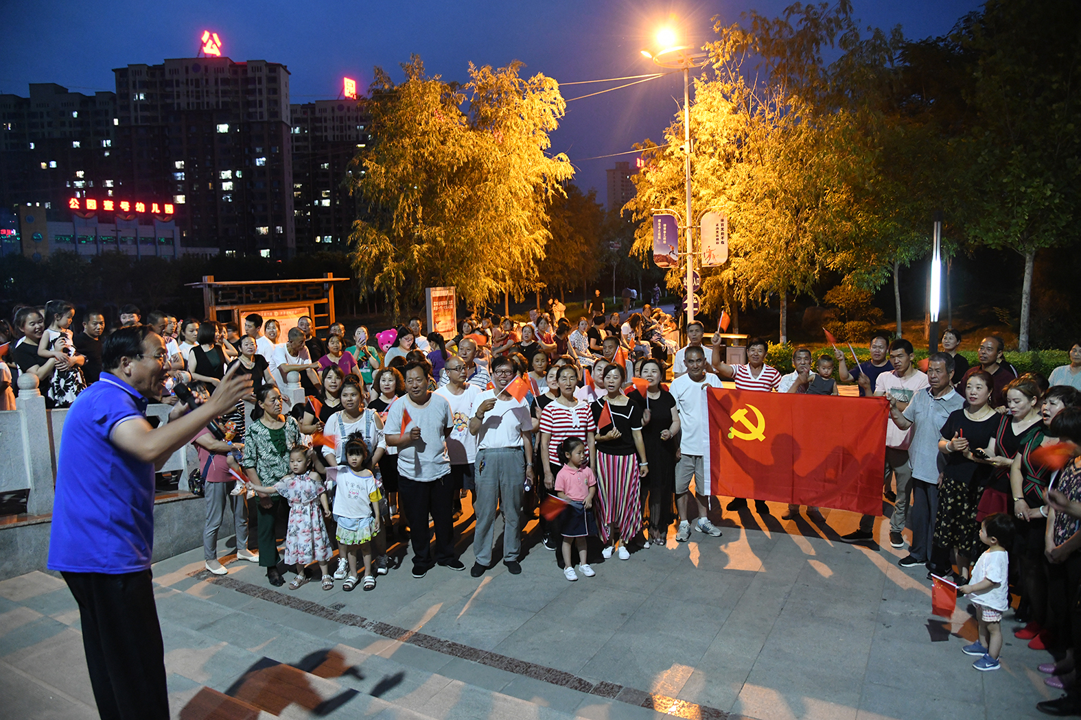 6月15日晚,闻喜县涑水公园体育广场上,群众唱响《我的祖国》《没有共产党就没有新中国》等红歌。 每当夜幕降临,该县许多市民自发来到体育广场,用感情真挚、自信饱满的歌声,表达对党的感恩之心和对伟大祖国的祝福之情。 特约摄影 温徐旺 摄
