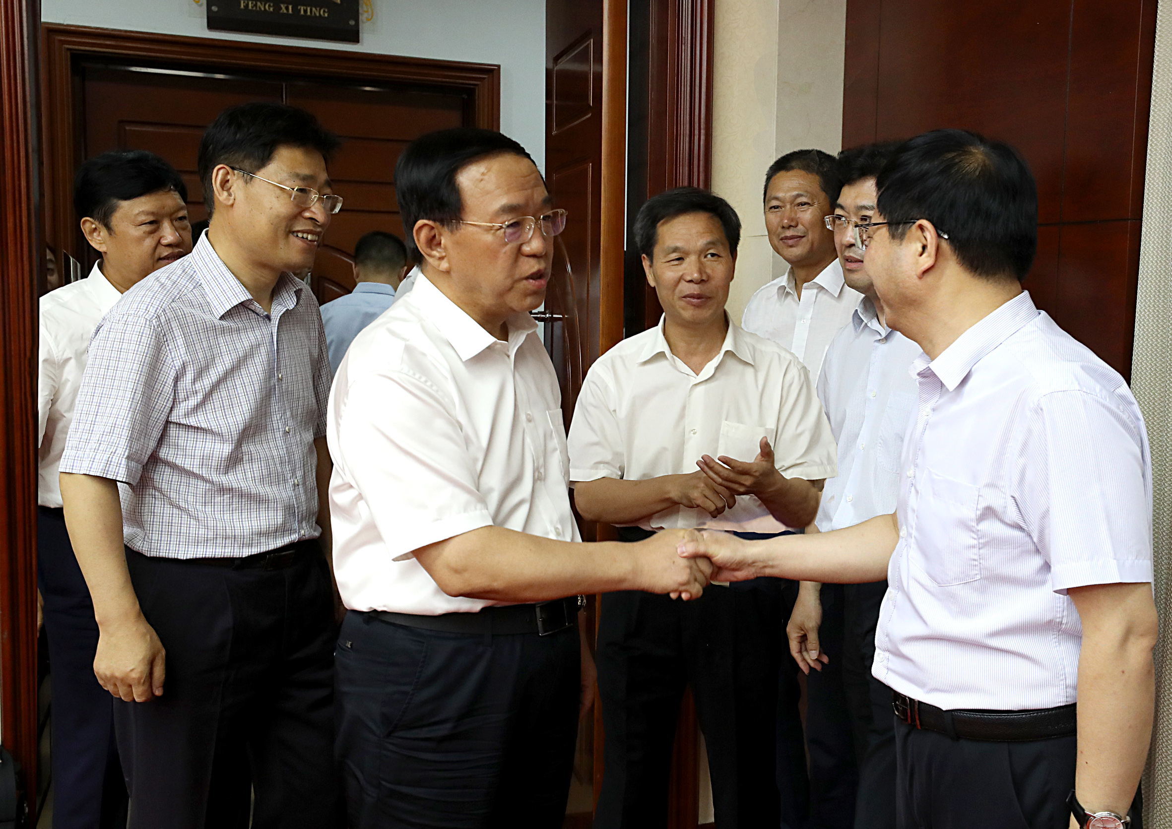 刘志宏与新一届文联班子成员亲切握手 记者 雷哲侠 摄
