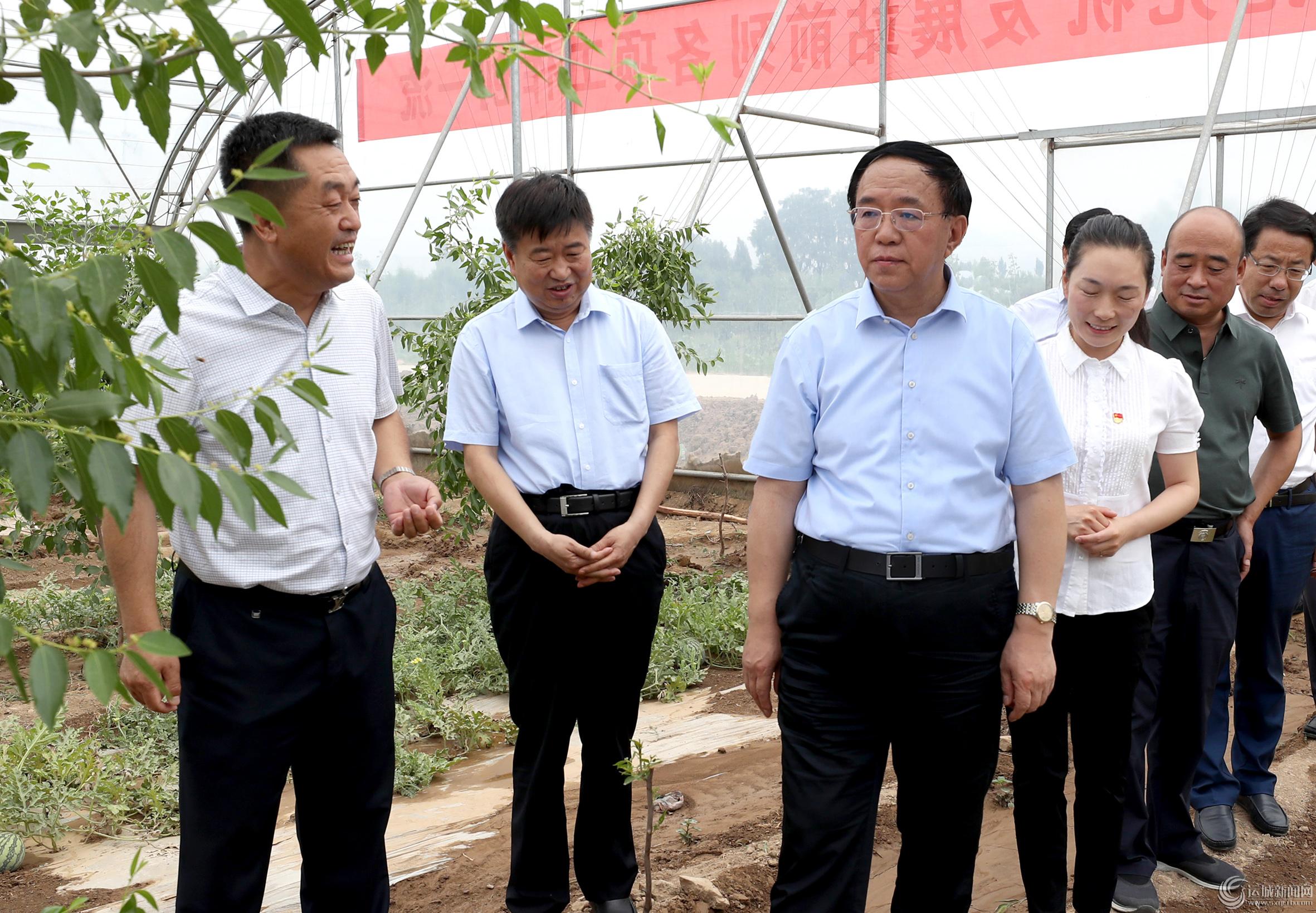 夏日的绛县,林密景秀,欣欣向荣。郝庄乡上吕村农业综合园区,大棚内富硒枣挂满枝头,枣树下套种的西瓜即将上市。该村2018年以来流转100余亩土地,大力发展设施农业,实现集体经济收入30万元。横水镇西灌底村通过流转500亩土地,以股份制形式,建设高标准樱桃示范基地,实现集体经济收入11万元。刘志宏走进大棚,仔细询问种植结构调整、合作社运营模式、集体经济收入等情况。他指出,发展现代农业、壮大集体经济,要注重培育新的经营主体,走公司化运营、工厂化管理的路子;要在前期试点的基础上深入推进分配机制改革,拿出一部分增量收入奖励农业科技人员,推进科技强农。