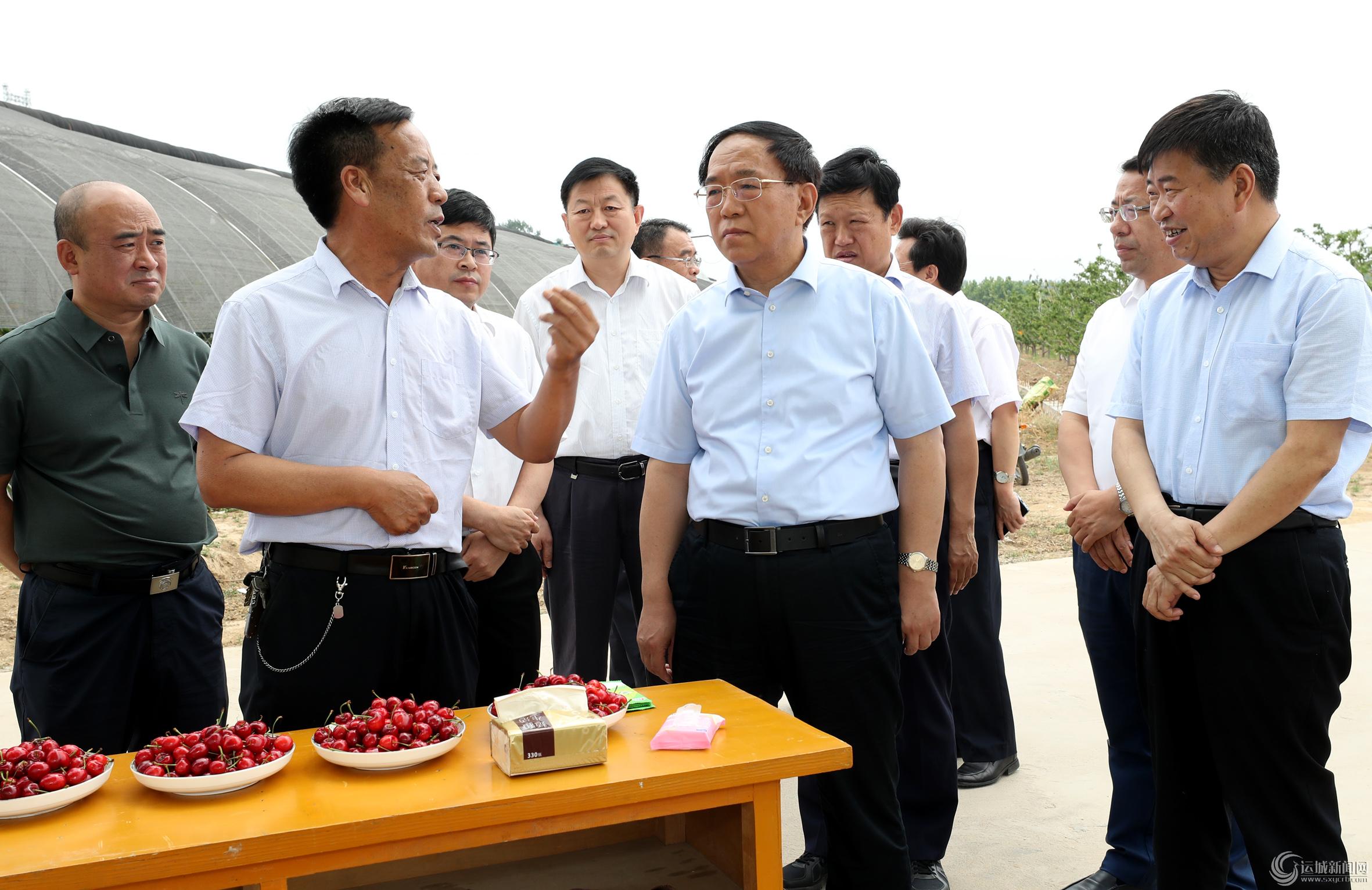 市委书记刘志宏在绛县横水镇西灌底村调研樱桃示范园区建设情况。 记者 雷哲侠 摄
