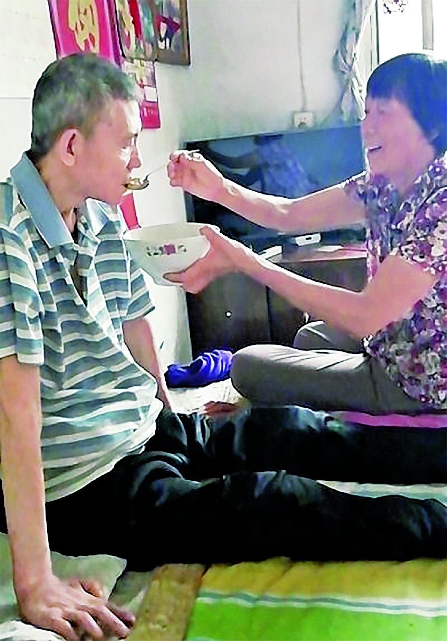 曹中亮下半身毫无知觉,大小便都得在床上,张淑英隔三差五就给丈夫擦洗身子。尤其是曹中亮刚卧床的那几年,拉屎、撒尿都不知道喊,有时候一天拉尿几次床,张淑英就要不停地换晒刷洗被褥。张淑英家的被褥一年不知拆洗了多少次,她也不知道夜里自己得起多少回床,这已经成了她的一种习惯。
