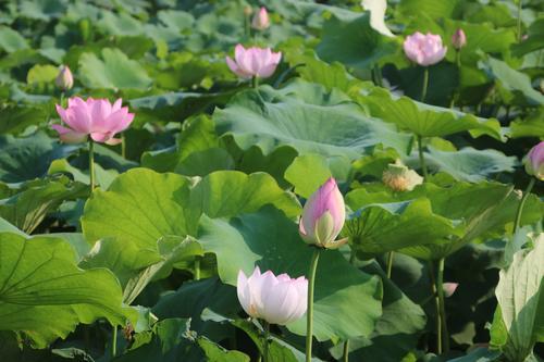 荷花属于长日照植物,对温度要求较高,天气越热,花开得越好。每年夏至前后,是一年一度赏荷的最好时机,尤以早晚时间最佳。仲夏时节,永济市滨河公园和黄河、涑水河、伍姓湖滩涂,或自然、或人工的荷花池里,一张张荷叶重重叠叠,一朵朵荷花竞相绽放,吸引着不少周边市民、外地游客和摄影爱好者慕名而来观光和拍照。薛启涛 张菊红