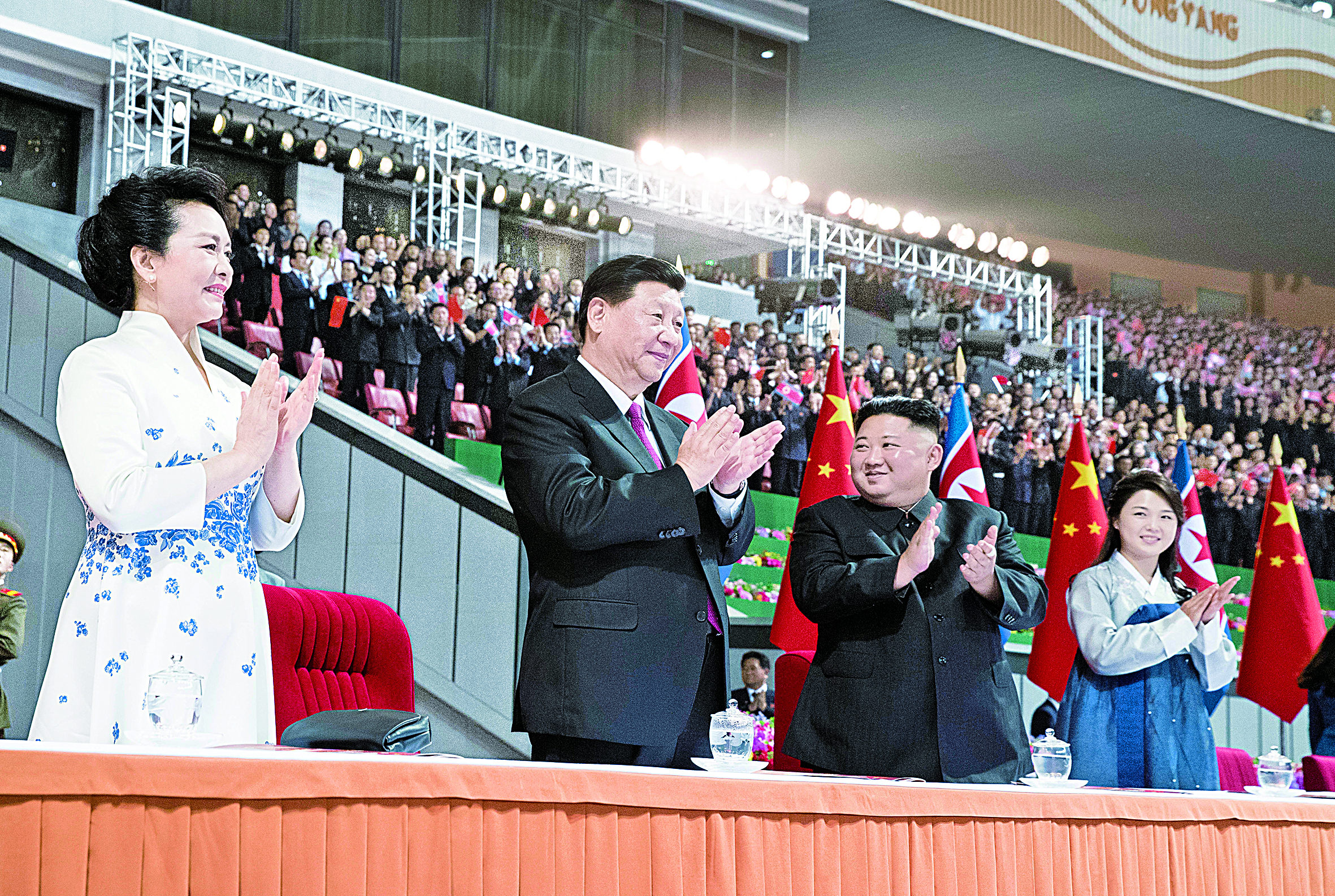 图2 6月20日晚,中共中央总书记、国家主席习近平和夫人彭丽媛在朝鲜劳动党委员长、国务委员会委员长金正恩和夫人李雪主陪同下,在平壤“五一”体育场同朝鲜各界群众一道观看大型团体操和艺术演出。