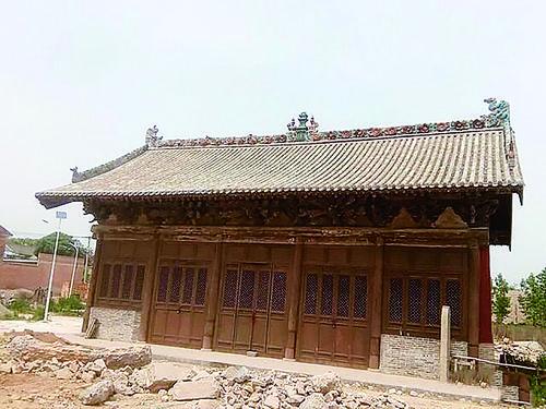 拜访之时,庙前正在施工,据说是建造敬老院,庙门紧锁,只能隔着窗户一睹五虎上将的神威风采。由于不能拍下照片,让更多的人瞻仰,空余遗憾。后来经同事帮助,总算拍下照片。屋脊建有琉璃鸱吻和脊刹,木构基本上是原文物构建,尽显精工巧作。站在五虎庙前,感觉这庙宇挺孤单,以一种特殊的方式诉说历史的辉煌和缺憾。