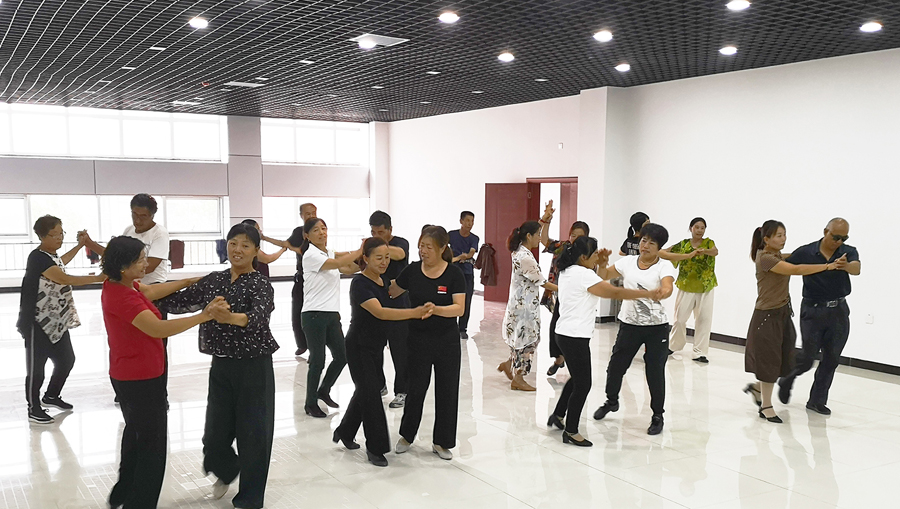 6月22日,舞蹈爱好者在万荣县文化馆跳交谊舞。