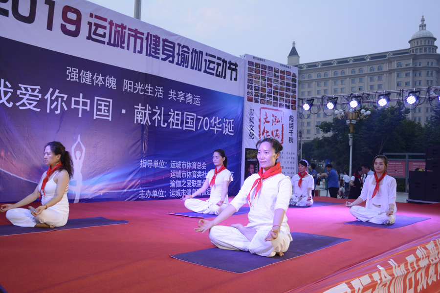 此次活动由市体育类社会组织党总支指导、运城市健身瑜伽运动协会主办。队员们在《我爱你,中国》的旋律中表演,动作优美,整齐划一,宣传瑜伽健身的同时,融入了爱国主义的主旋律。