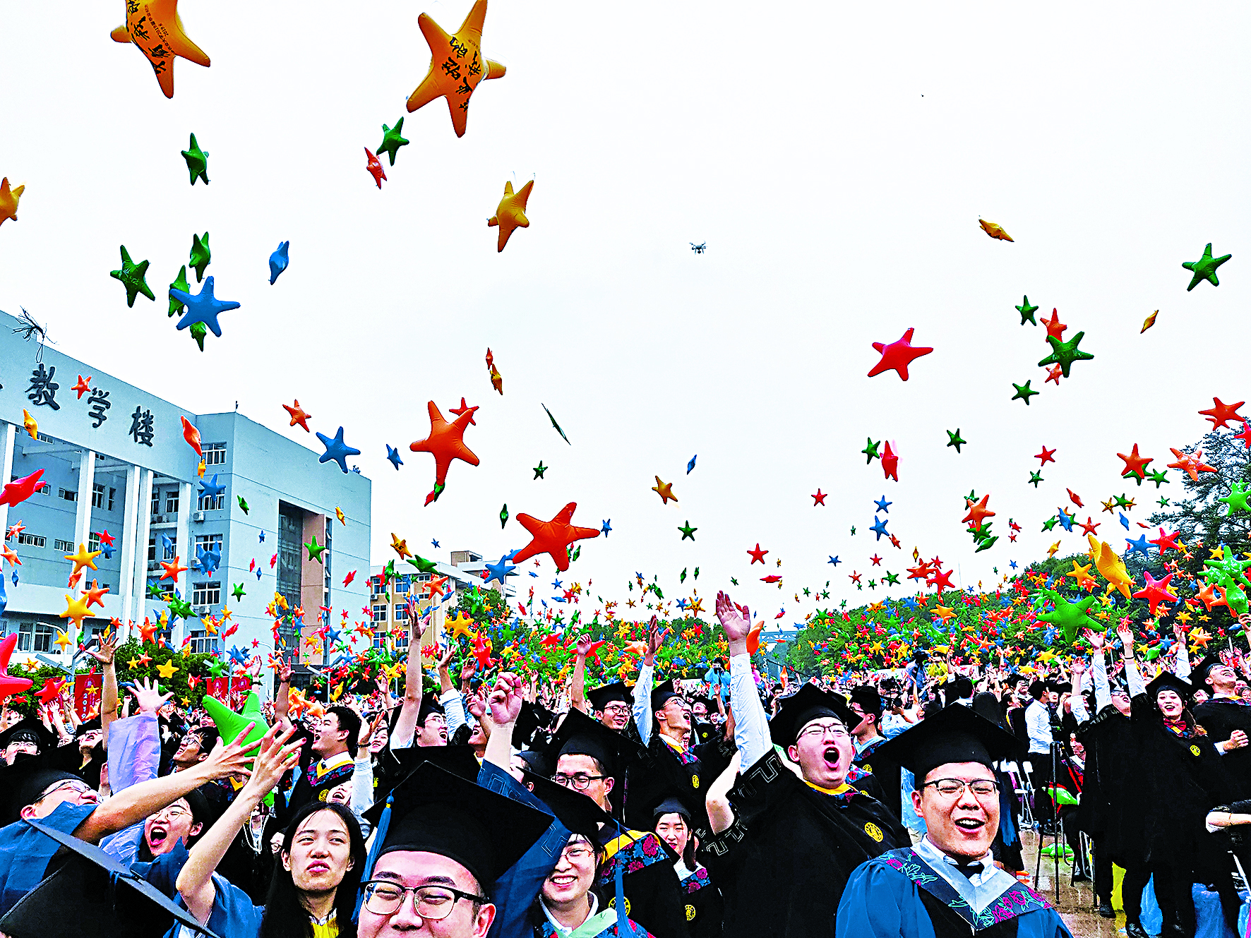 6月22日,4100余名华中农业大学毕业生在毕业典礼上放飞五色气球。