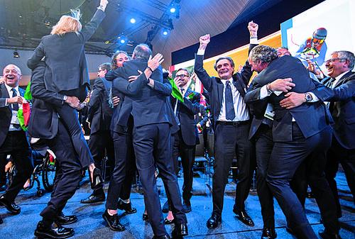 在巴赫宣布最终结果后,米兰/科尔蒂纳丹佩佐代表团一片欢腾,他们相互拥抱庆祝,并齐声高喊“意大利”“意大利”。斯德哥尔摩/奥勒代表团的不少成员则眼含泪水,止不住摇头,难掩沮丧的心情。