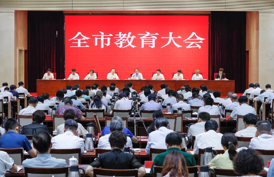 会议就加快推进教育现代化、办好人民满意的教育作出全面部署。要围绕“打好教育强市牌”,进一步增强做好教育事业的责任感和使命感。在加强党对教育工作的领导,落实教育优先发展战略,落实立德树人根本任务、培养德智体美劳全面发展的社会主义建设者和接班人,加强队伍建设,推进教育改革创新等方面走在前,不断提升教育服务经济社会发展能力。要深化“三项改革”,进一步激发全市教育持续发展的动力和活力。理顺教育管理机制体制,重点抓好“县管校聘”管理改革,持续深化城乡义务教育一体化改革,稳步推进职业教育改革,让教育改革成果惠及更多人民群众,成为推动大运城建设的强大内在动力。要突出“五个重点”,进一步提升全市教育事业的发展的质量和水平。不断扩大学前教育普惠性资源,促进义务教育优质均衡发展,加快国家级智慧教育示范区建设,着力建设一支高素质的教师队伍,全面抓好校园安全工作。要强化“三项举措”,进一步为加快建设教育强市提供坚强组织和保障。切实把教育摆在优先发展的战略位置,在组织领导上再加强,资金投入上再加大,配套政策上再健全,确保教育改革发展各项任务落实落地,奋力推动我市教育事业在新起点上实现新突破。