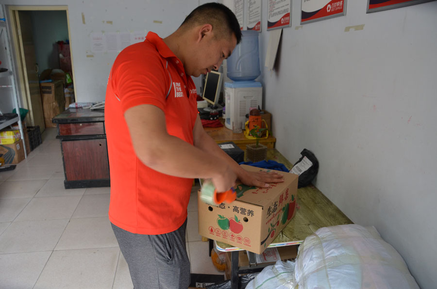 “客商不愿意来收购,那我就把苹果给他们发过去。”有了想法以后,2013年李朋璇注册了卓里邮政代办所,开始做快递。