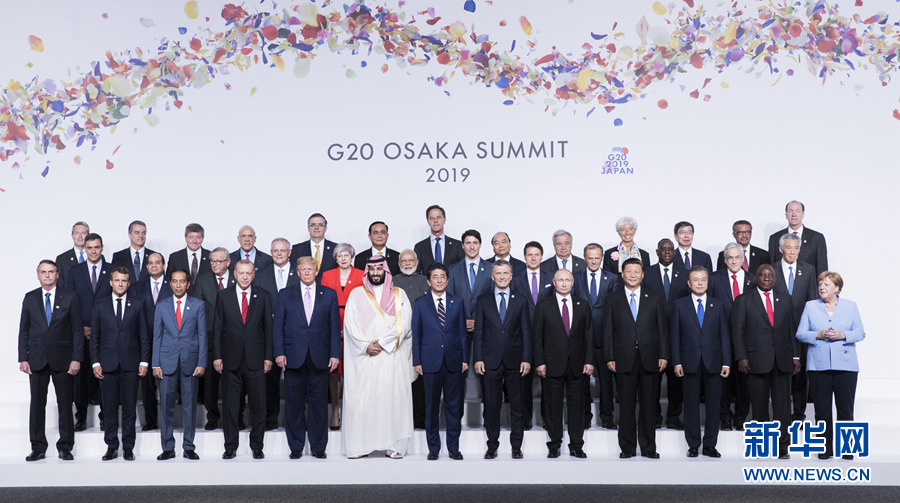 6月28日,二十国集团领导人第十四次峰会在日本大阪举行。国家主席习近平出席并发表题为《携手共进,合力打造高质量世界经济》的重要讲话。这是习近平同其他与会领导人合影。新华社记者 黄敬文 摄