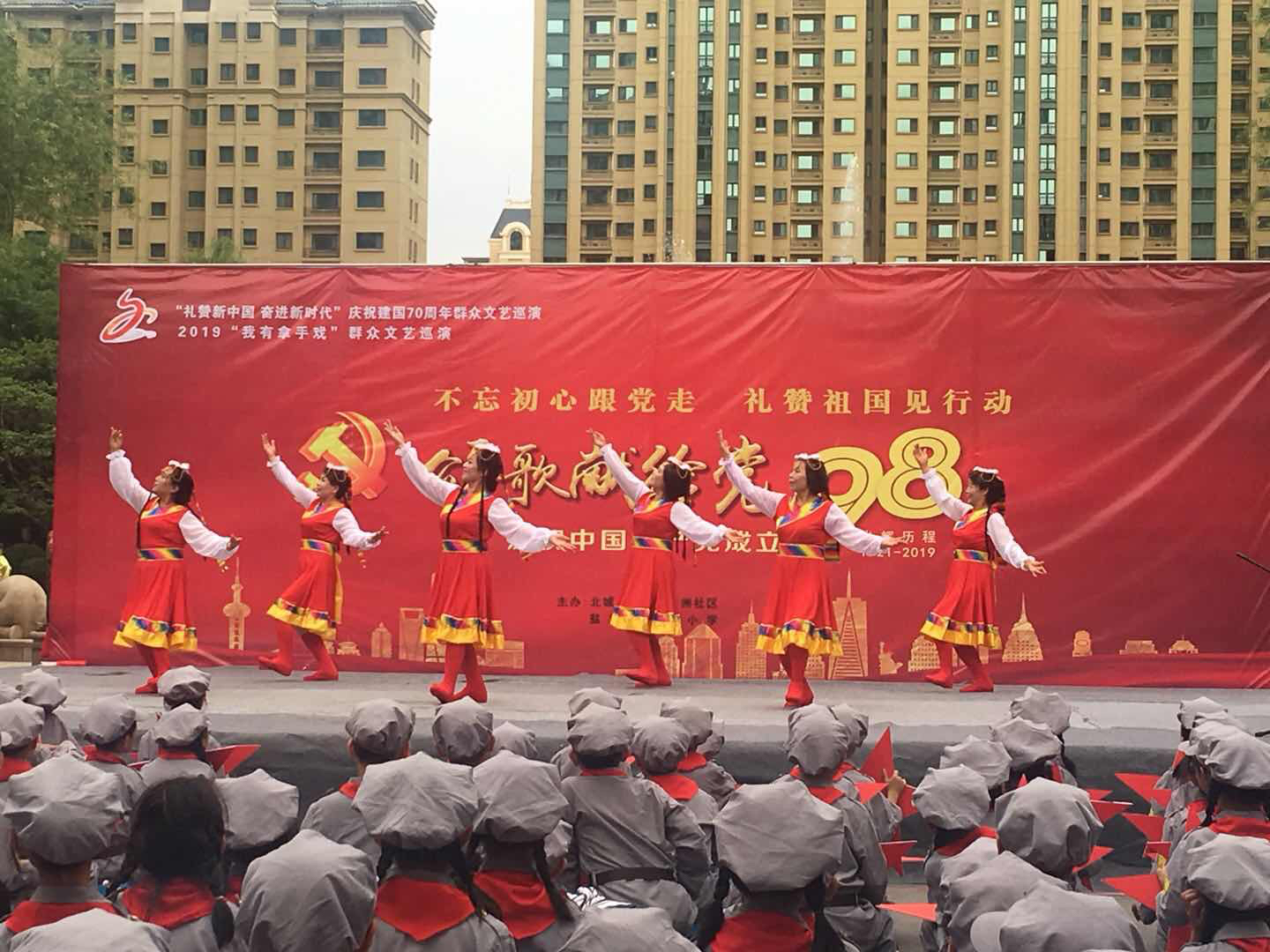 运城晚报讯(记者 寻霄)6月29日,盐湖区北城办恒大绿洲社区举办了“颂歌献给党”主题演出,来自社区的居民和红军小学的小学生共同唱起红歌,庆祝建党98周年。