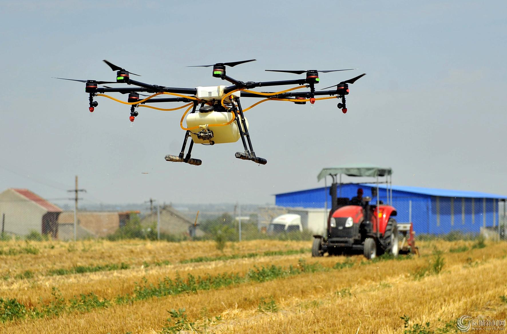 盐湖区无人机植保和麦后机械套种秋粮 记者 冯革才 摄