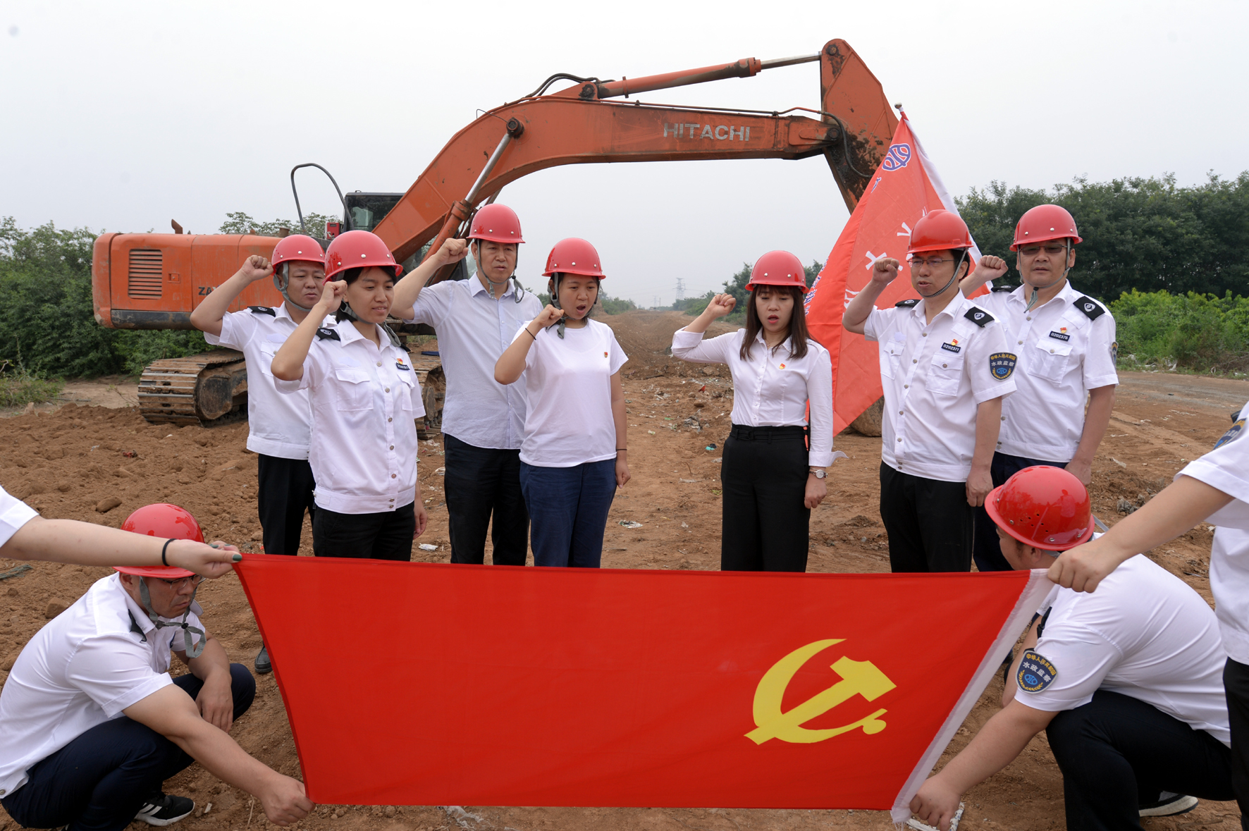 6月25日,市水务局第八党支部在工地举行主题活动。 冯革才 摄