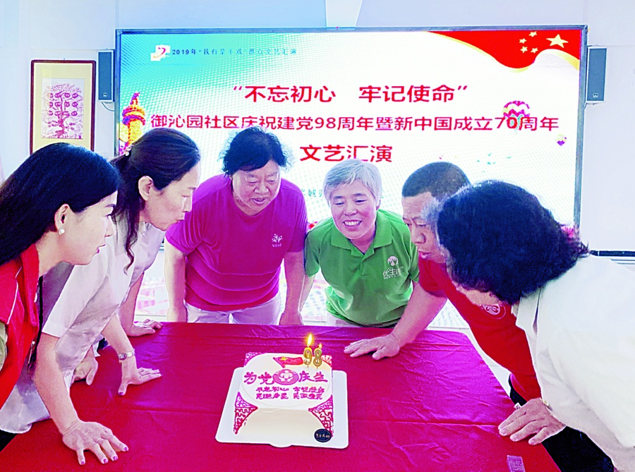 运城晚报讯(记者 寻霄)6月28日,北城办御沁园社区举办了一场特别的生日宴会,宴会主角是中国共产党,通过点燃蜡烛、切分蛋糕、唱响红歌的方式为党庆祝98岁生日,表达对党的热爱。