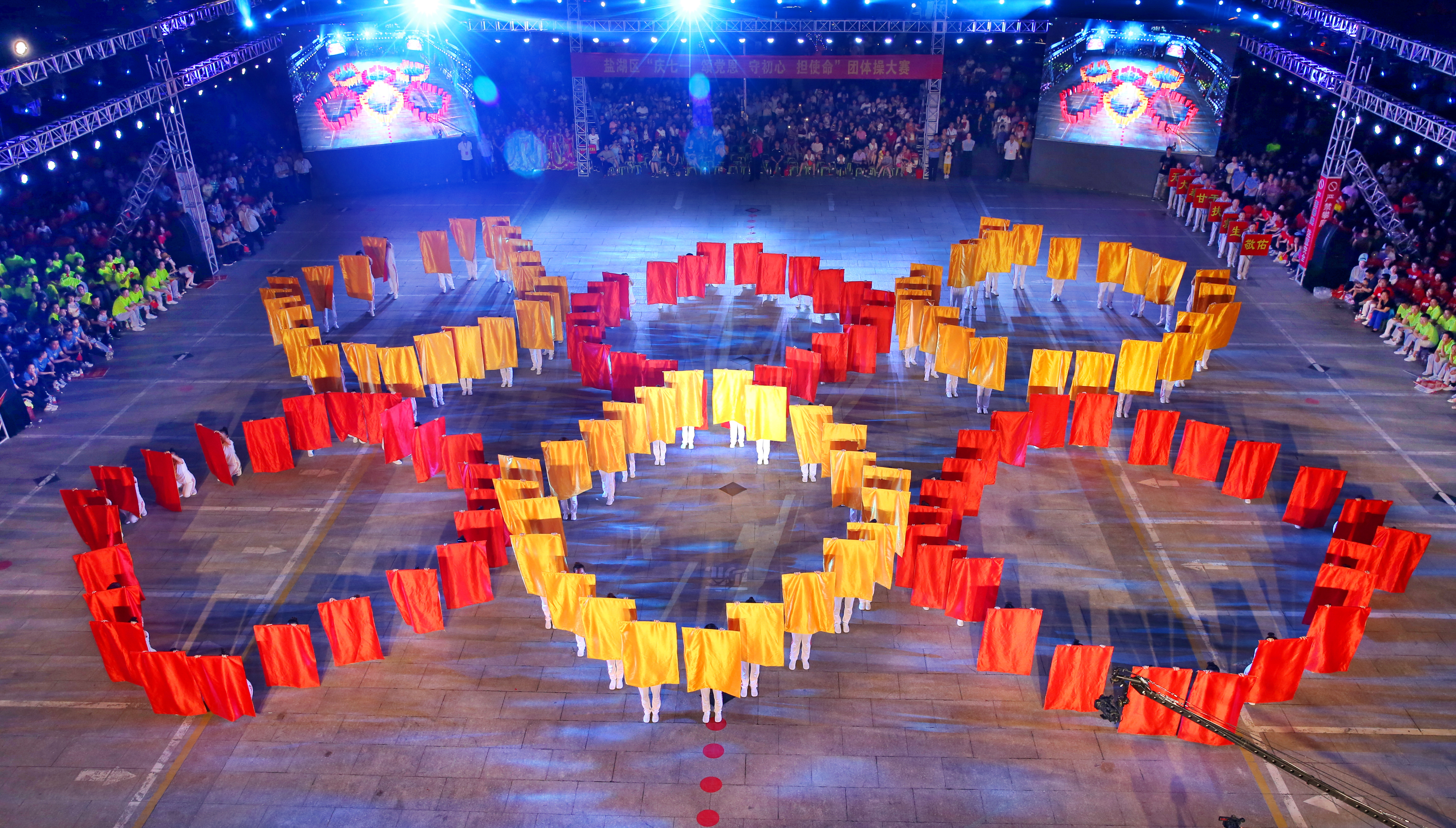 6月30日,盐湖区“庆七一 颂党恩 守初心 担使命”大型团体操比赛在盐湖会堂前举行,来自该区宣传文化、税务、政法等系统的13支代表队表演了精彩的团体操。活动旨在庆祝中国共产党成立98周年,展现盐湖区党建显著成效,激励全区党员干部不忘初心、牢记使命,改革创新、奋发有为,投身幸福盐湖建设的伟大征程。图为一支代表队在表演团体操。