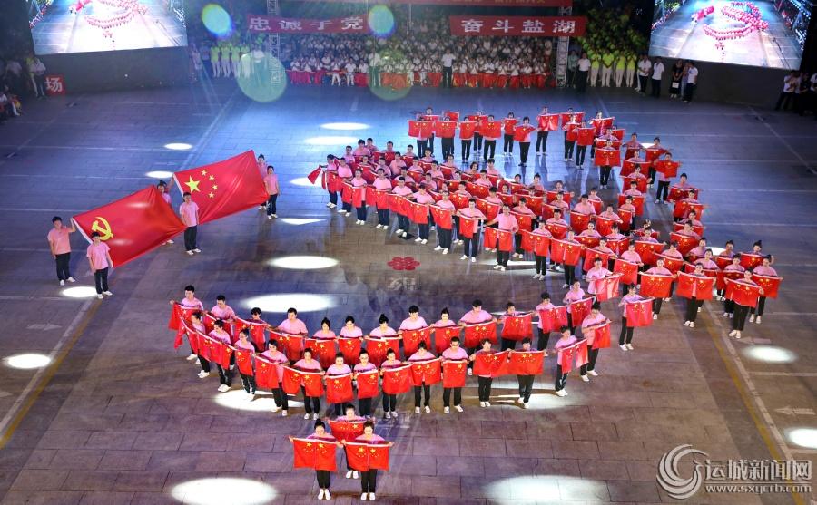 ▲6月30日,盐湖区“庆七一 颂党恩 守初心 担使命”大型团体操比赛在盐湖会堂前举行,来自该区宣传文化、税务、政法等系统的13支代表队表演了精彩的团体操。活动旨在庆祝中国共产党成立98周年,展现盐湖区党建显著成效,激励全区党员干部不忘初心、牢记使命,改革创新、奋发有为,投身幸福盐湖建设的伟大征程。图为一支代表队在表演团体操。摄影 孙立功