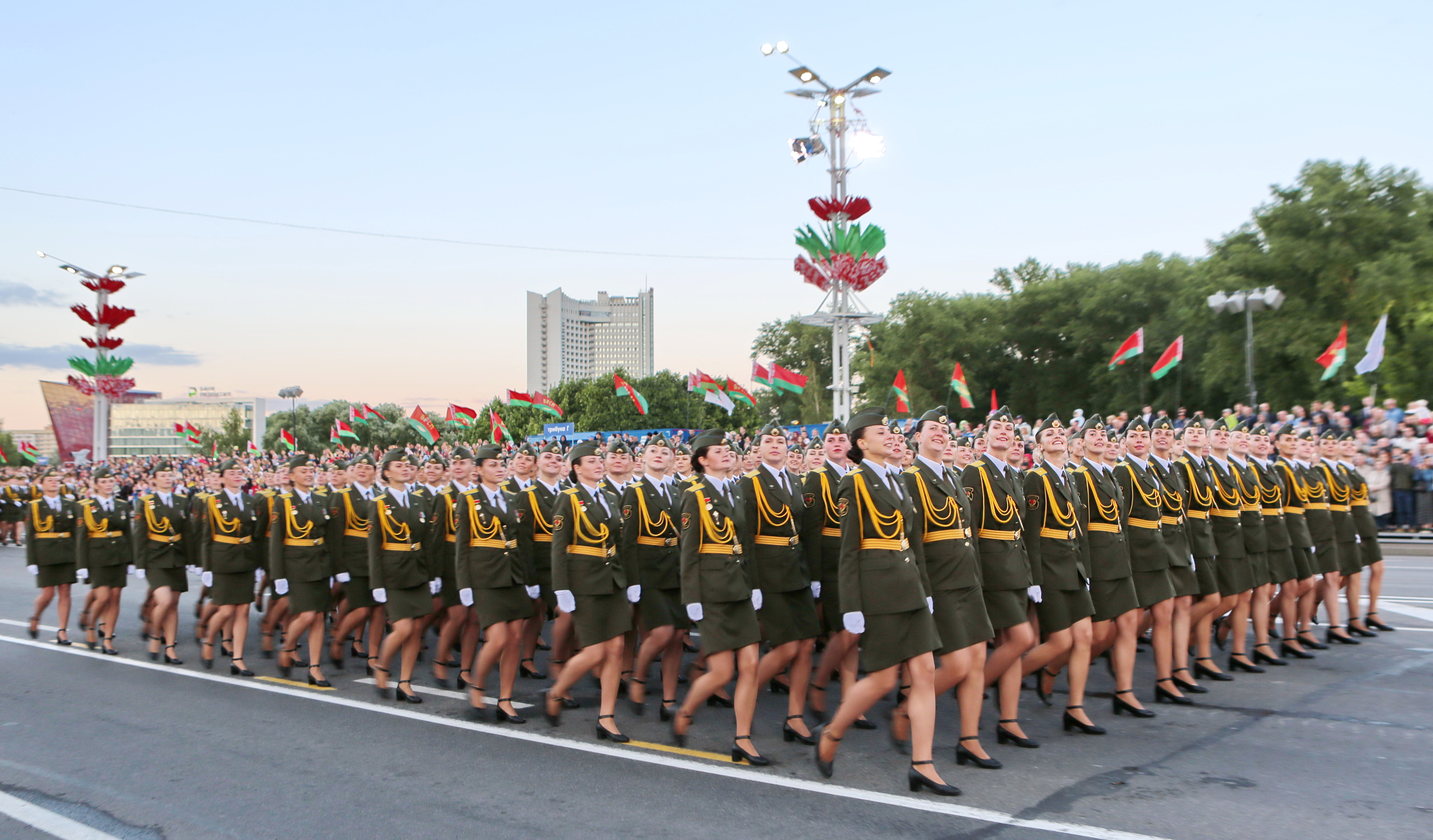 ▲7月3日,在白俄罗斯首都明斯克,女兵参加独立日阅兵式。